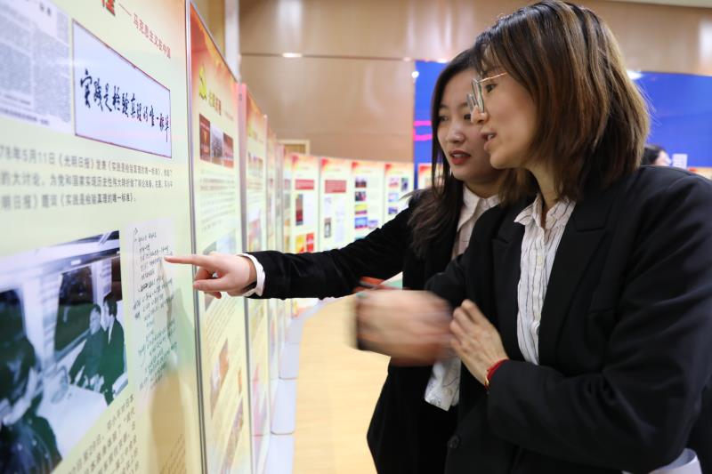 “流动的马克思主义学堂”以展板的形式呈现,分为“光辉历程——马克思主义在中国”“领航新时代”两大篇章,生动展示了马克思主义的普遍真理同中国革命、建设、改革相结合、不断推进马克思主义中国化理论成果发展的光辉历程,系统阐释了中华民族从“站起来”“富起来”到迎来“强起来”伟大飞跃的理论逻辑和历史逻辑。