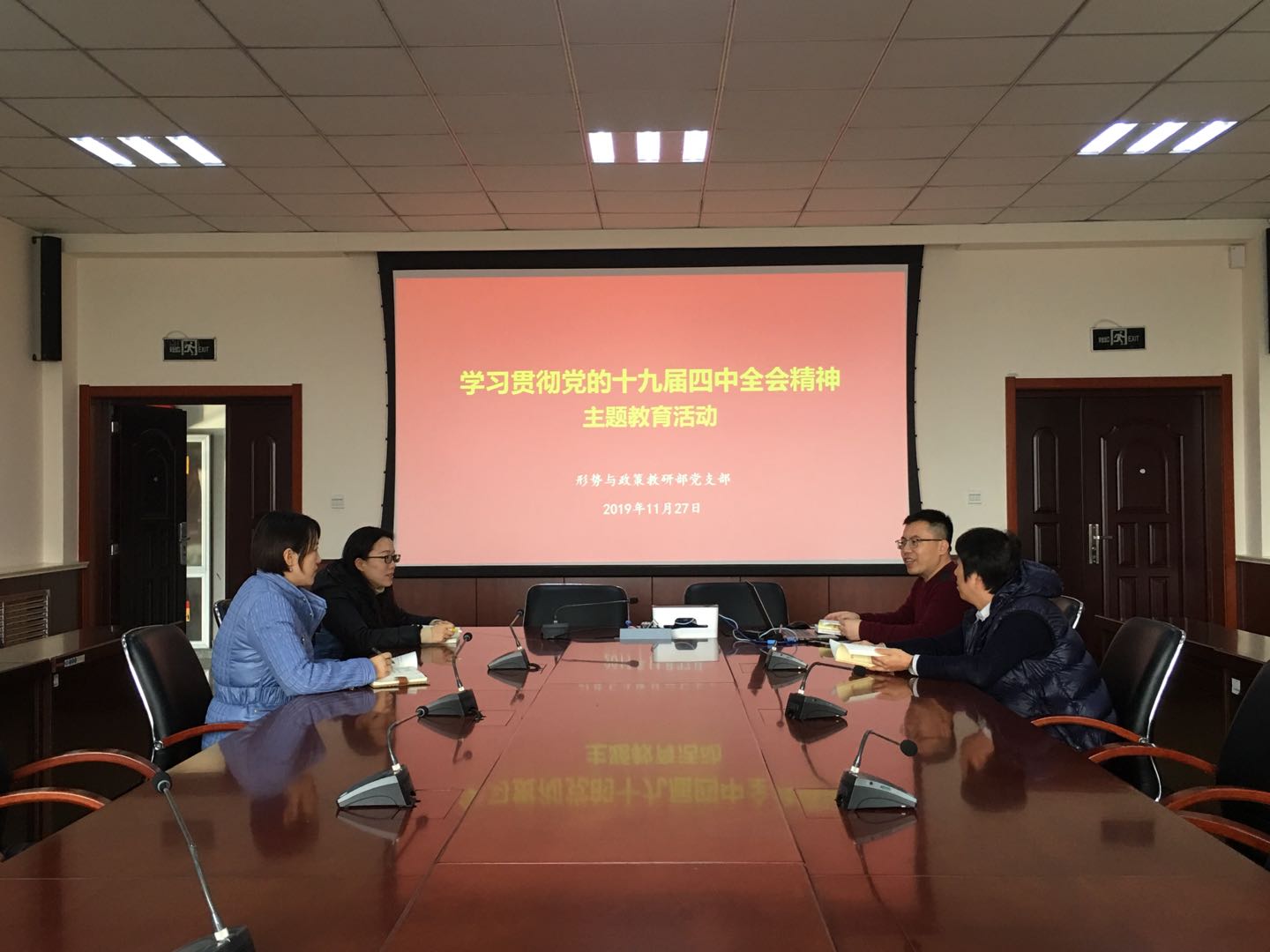 11月27日,形势与政策教研部党支部开展学习贯彻党的十九届四中全会精神专题会议,活动由党支部副书记徐正中主持。