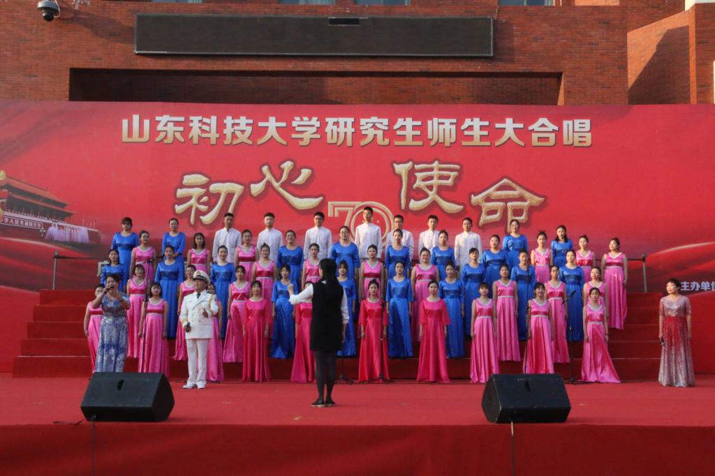 10月20日下午,由研究生院(部)举办的“不忘初心、牢记使命”beat365平台唯一官网研究生师生大合唱在繁星广场隆重举行。学院教师代表、全体研究生共计60余人参加合唱。