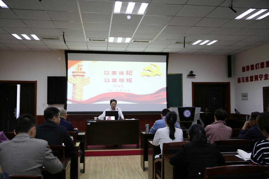 10月10日上午,马克思主义学院在J9-227召开警示教育专题报告会,邀请校纪委副书记周如东教授作“以案明纪 以案明规”专题报告。报告会由党委书记郭加书主持,学院领导班子成员、全体教师及研究生党员参加。