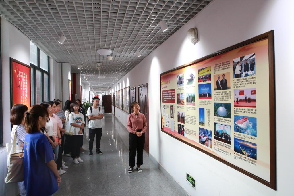邱楚珈带领研究生党员和入党积极分子深入了解“领航新时代”文化长廊,本次讲解由启航新时代、共筑中国梦、旗帜鲜明讲政治、强国富民之路、意识形态工作是党的一项极端重要的工作、坚定文化自信、共建共享美好生活、绿水青山就是金山银山、构建人类命运共同体、奏响强军号角、打铁必须自身硬等十一个版块构成,深入介绍了习近平总书记的重大活动、重要论述和当前取得的重大成就,展示党和国家事业的新作为、新气象、新风貌,展现了党和人民实现中华民族伟大复兴的中国梦的信念与决心,提出新时代青年应将我的梦和中国梦有机结合,书写属于新时代青年的追梦历程、青春斗志、理想信念、家国情怀。
