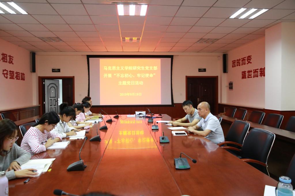 9月19日下午,beat365平台唯一官网研究生党支部开展“我的初心使命”主题党日活动。学院党委书记郭加书、全体研究生党员参加活动,活动由研究生党支部书记邴建伟主持。