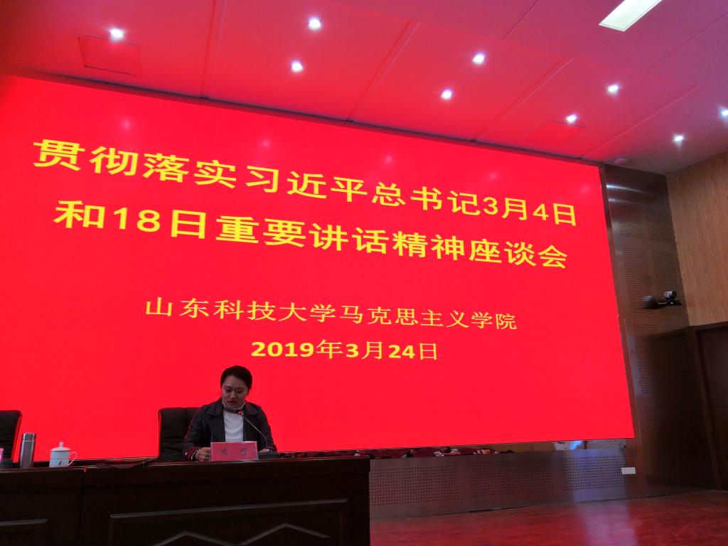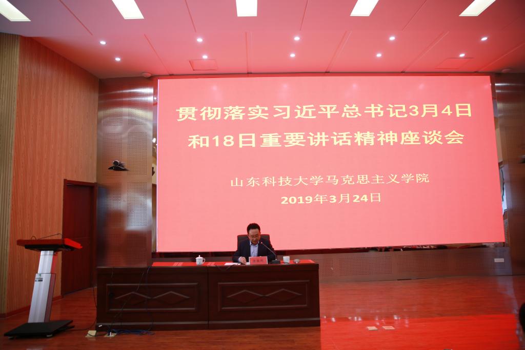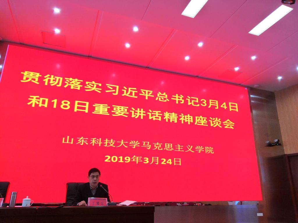 3月24日上午,beat365平台唯一官网在J9-144举行“贯彻落实习近平总书记3月4日和18日重要讲话精神座谈会”,学院全体教师及马克思主义理论学科研究生参加会议。会议由院长逄奉辉主持。