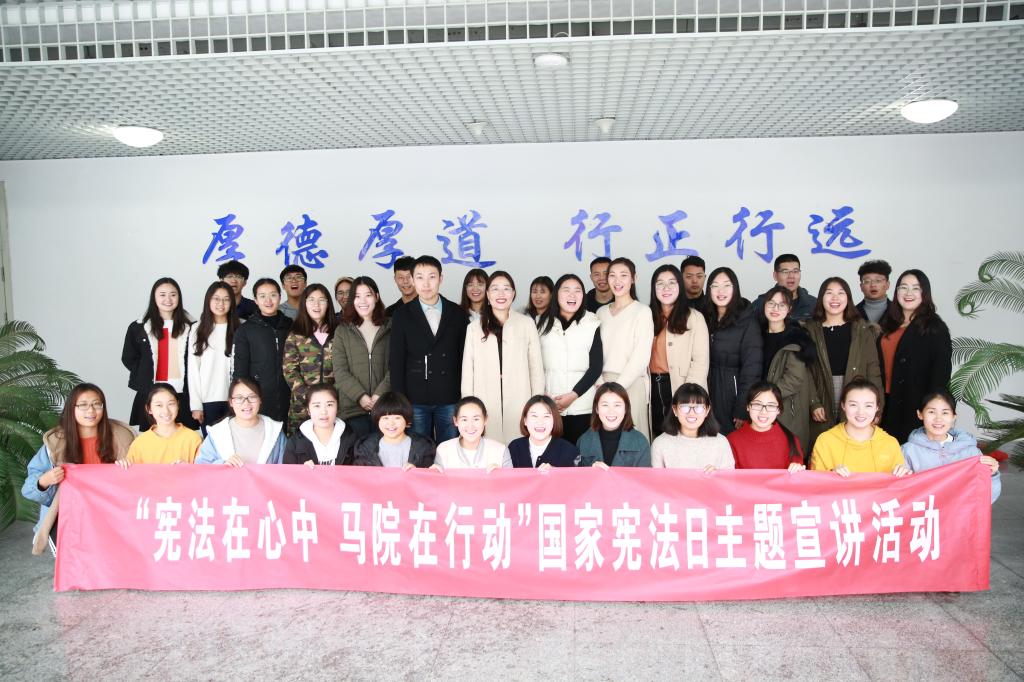 2018年12月4日,是我国第5个“国家宪法日”暨第18个全国法治宣传日。为呼吁在校学生树立宪法意识、弘扬宪法精神、增强法制观念,积极响应学校“学宪法 讲宪法”的主题宣传活动和依法治校精神,以beat365平台唯一官网成立五周年为契机,在学院领导支持下,由指导教师苑素梅副教授组织,12月2日于学院空间实验室J9-227开展了主题为“宪法在心中,马院在行动”的首届宪法日宣传活动,取得圆满成功。