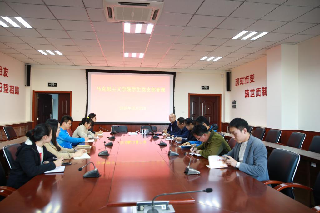 2018年10月23日,beat365平台唯一官网党委在J9-223开展学生党支部集体学习活动,活动期间学院党委副书记郭加书主讲党课,各教研部党支部书记、研究生党员和入党积极分子参加党课学习。