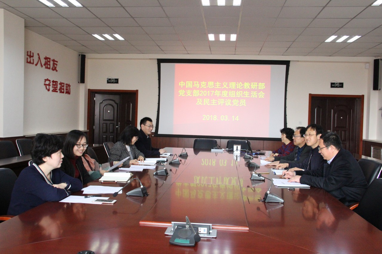 2018年3月14日,中国马克思主义理论教研部党支部召开2017年度组织生活会和开展民主评议党员,副院长邵勇参加指导会议,支部党员全部参加。
