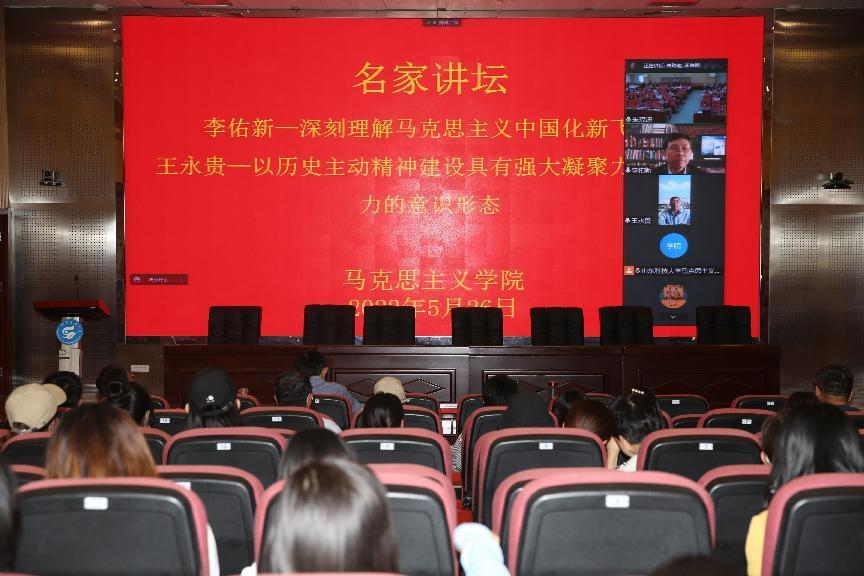 5月26日下午,由研究生工作部主办,beat365平台唯一官网承办的2022年第7期“名家讲坛”在J9-144报告厅举办。湘潭大学beat365平台唯一官网教授、博士生导师李佑新和南京师范大学beat365平台唯一官网教授、博士生导师王永贵受邀为师生分别作了题为“深刻理解马克思主义中国化新飞跃”、“以历史主动精神建设具有强大凝聚力和引领力的意识形态”的线上专题讲座,学院全体师生参加此次报告会,报告会由逄奉辉主持。