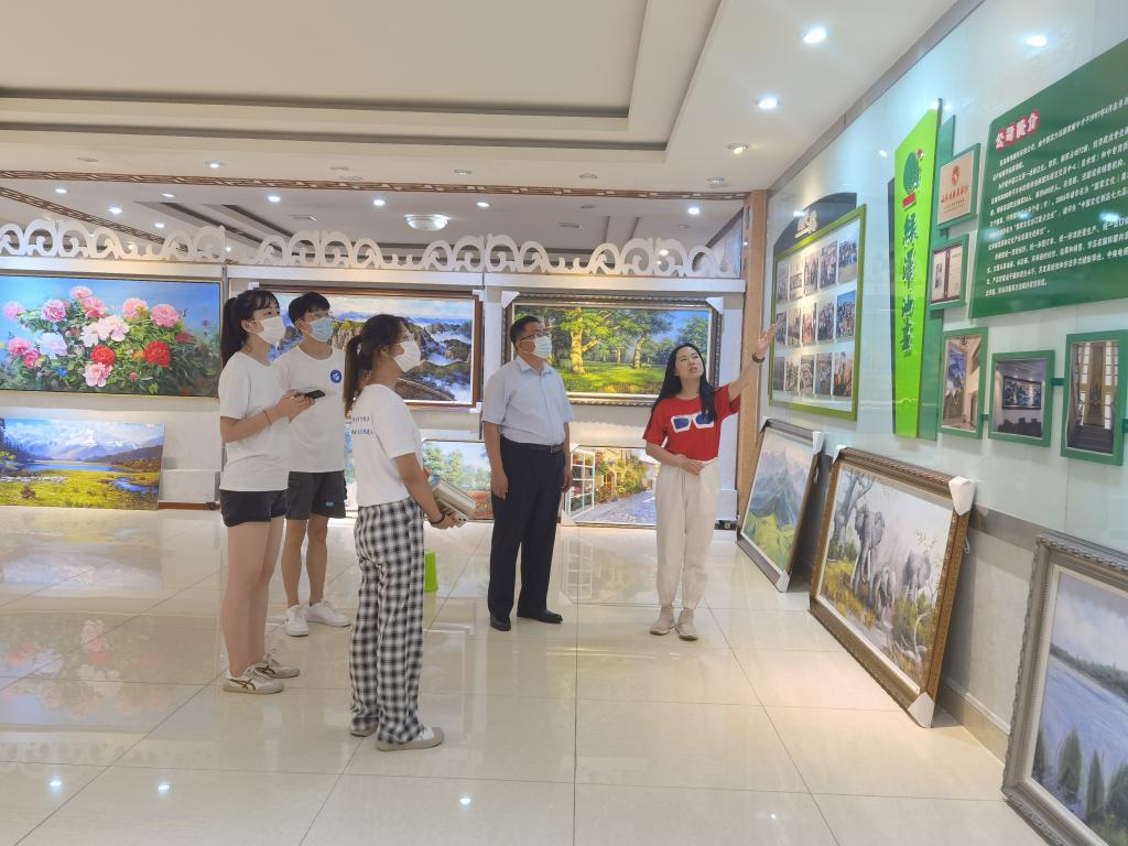 下午,在街道办事处工作人员李雪莲、高洁的陪同下,实践团队来到大泥沟头村,与老书记张财金、新书记王武星等座谈。2003年绿泽画院落户于此,与达尼画家村联手互动,成立绿泽美术职业学校,建成绿泽美术馆,培养油画人才,油画作品畅销欧美20多个国家和地区,成为中国北方最大的油画企业、国家文化出口重点企业。曾经偏僻落后的小山村现在成了远近闻名、画师云集的“达尼画家村”,先后被评为“全国文明村”“中国美丽休闲乡村”,目前村集体收入达到160万元,农民人均收入达到2.36万元。