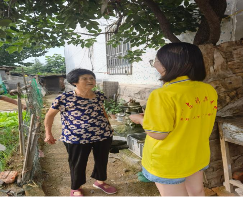 (实践团队成员张晓君与儒林村村民交谈)