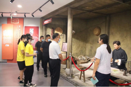 (讲解员为团队成员讲述陈望道先生翻译《共产党宣言》时的场景)