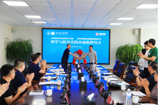 培训与研修期间,学院与青岛军民融合发展集团有限公司举行了思政课教学与研究实践基地揭牌仪式。院长逄奉辉、院党委书记徐波,融发集团党委副书记、总经理陈伟、融发集团党委委员、副总经理王德波,融发集团副总经济师、资产文旅公司总经理杜长江、融发集团团委书记、融发文旅党支部书记、副总经理来友涛出席仪式,参加培训与研修的学院教师、融发集团干部职工代表参加仪式。逄奉辉、陈伟分别致辞并共同为思政课教学与研究实践基地揭牌。