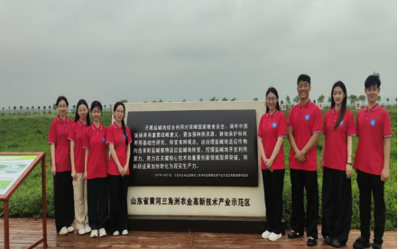 随后,实践团来到山东农科院黄三角研究院(东营基地)参观学习,并进行田间观察。团队成员了解到,基地通过平台开放共享,集聚国内外优势创新创业资源,重点围绕盐碱耕地质量提升、耐盐碱适生作物育种、盐碱地高效利用和农业生态安全,开展科研创新、成果转化等工作。接着,基地工作人员带领实践团深入试验基地,观察盐碱地作物长势情况,团队成员深刻感受到广袤的盐碱地上正在涌动着农业现代化发展的“新希望”。