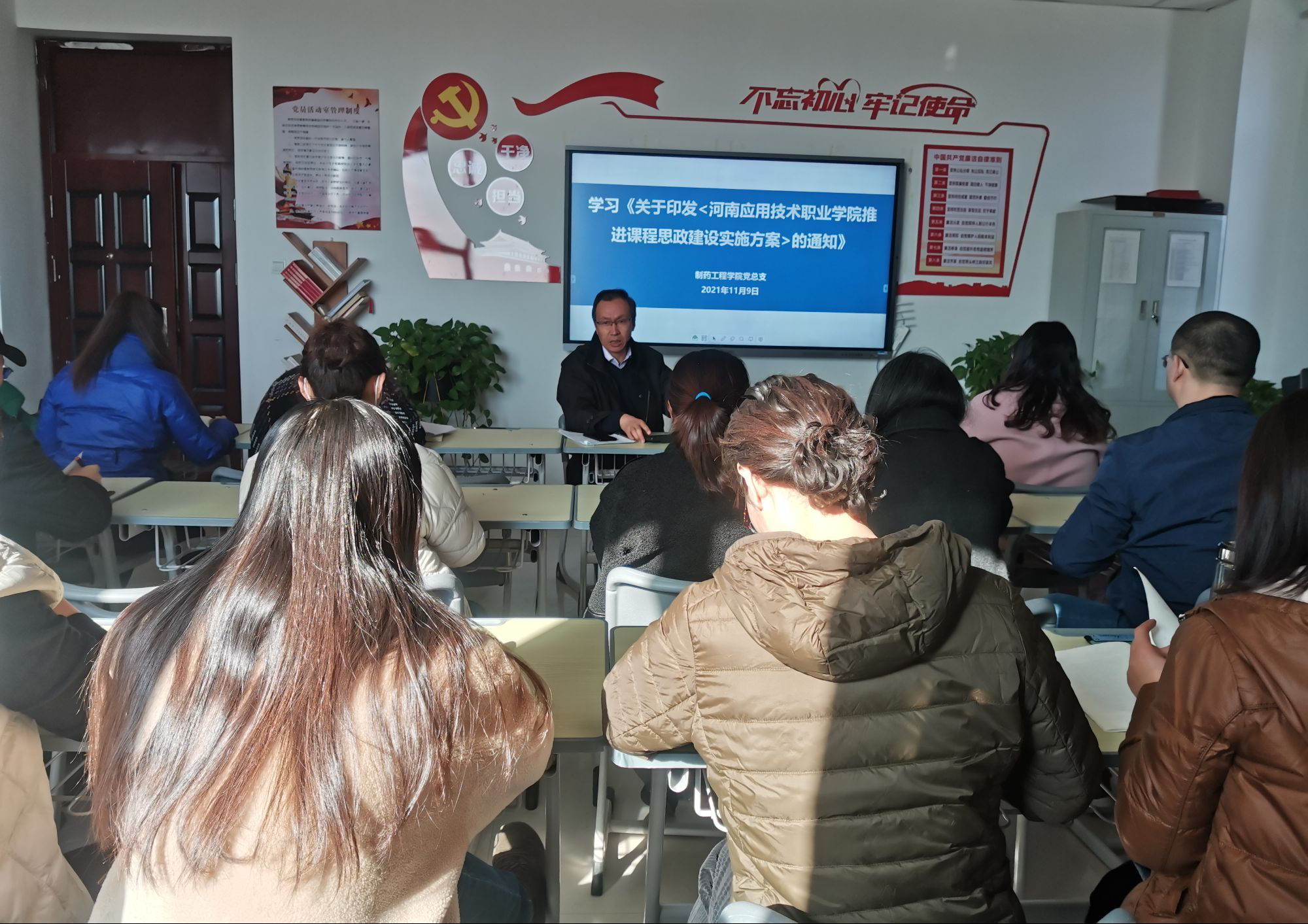 为充分发挥课堂主渠道在学校思想政治工作中的重要作用,切实把思想政治教育贯穿人才培养体系全过程,全面推进我院课程思政建设,提高课程思政育人作用,根据学校工作安排,制药工程学院党总支于2021年11月9日下午2点在501党员活动室,组织学习《beat365平台唯一官网推进课程思政建设实施方案》。制药工程学院党总支副书记韩恩远主持会议,党总支全体教职工参会。