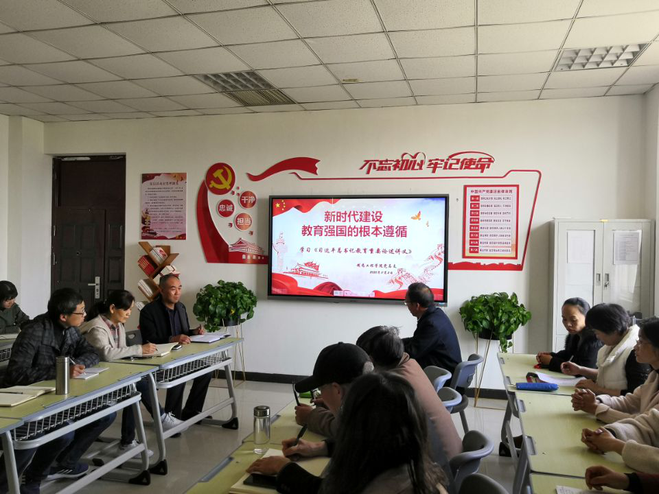 2020年11月3日,制药工程学院按照学校党委宣传部的统一安排,组织全体教师学习《习近平总书记教育重要论述讲义》导言部分---新时代建设教育强国的根本遵循。