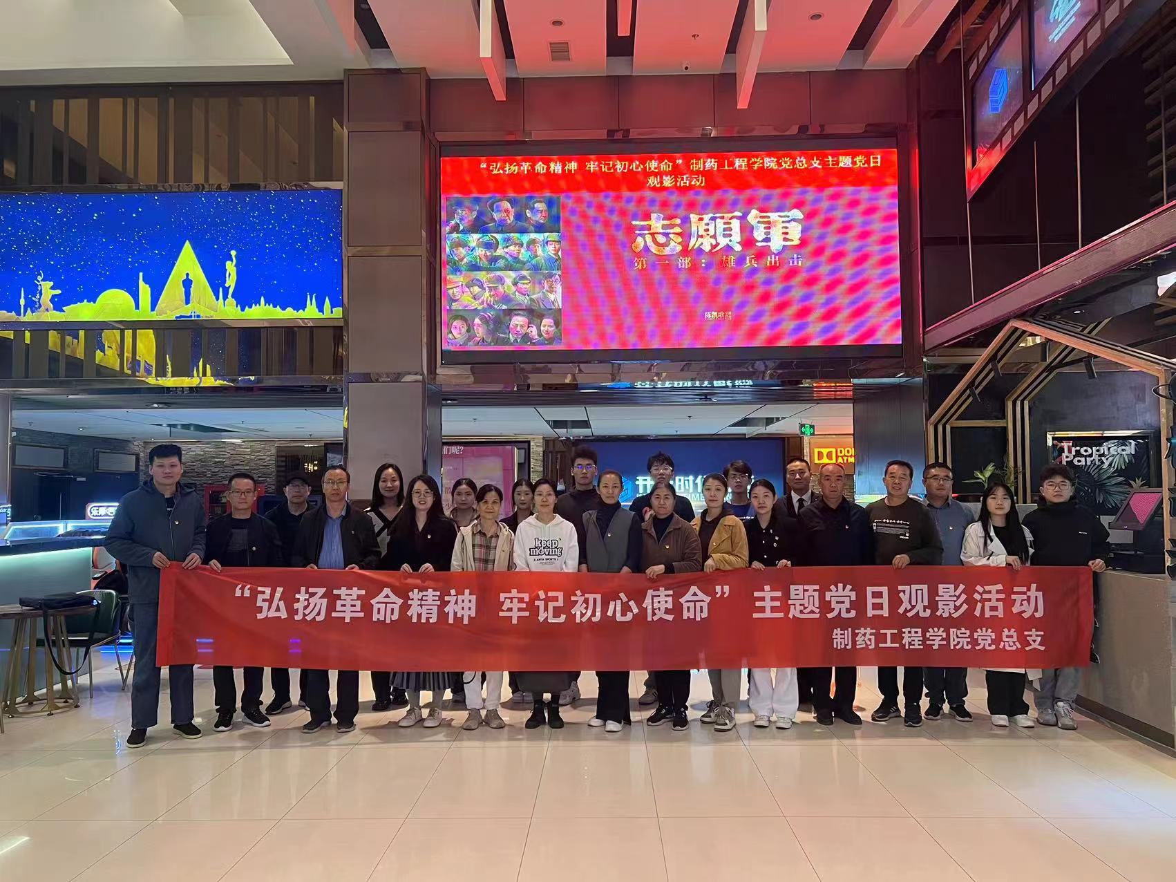 为贯彻落实党的二十大精神,扎实开展学习贯彻习近平新时代中国特色社会主义思想主题教育,引导党总支全体党员继承和发扬优良革命传统,弘扬爱国主义精神,激发爱国爱党情怀,进一步凝聚奋进新发展的力量。制药工程学院党总支于2023年10月20日赴开封市开元广场3楼开元时代影城开展以“弘扬革命精神 牢记初心使命”为主题的爱国主义影片《志愿军:雄兵出击》观看主题党日活动。