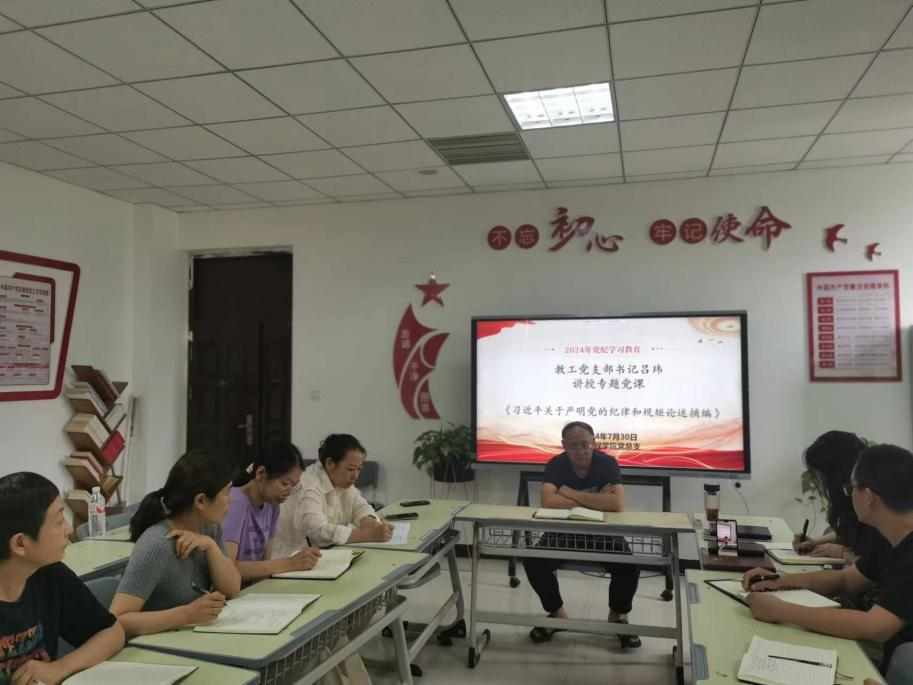 为深入贯彻落实习近平总书记关于党纪学习教育的重要论述,切实推进党纪学习教育入脑入心、走深走实。制药工程学院党总支于2024年7月30日下午在301党员活动室开展党纪学习教育主题党日活动,本次会议由学院院长吕玮领学,学院全体教职工线上、线下参加学习。