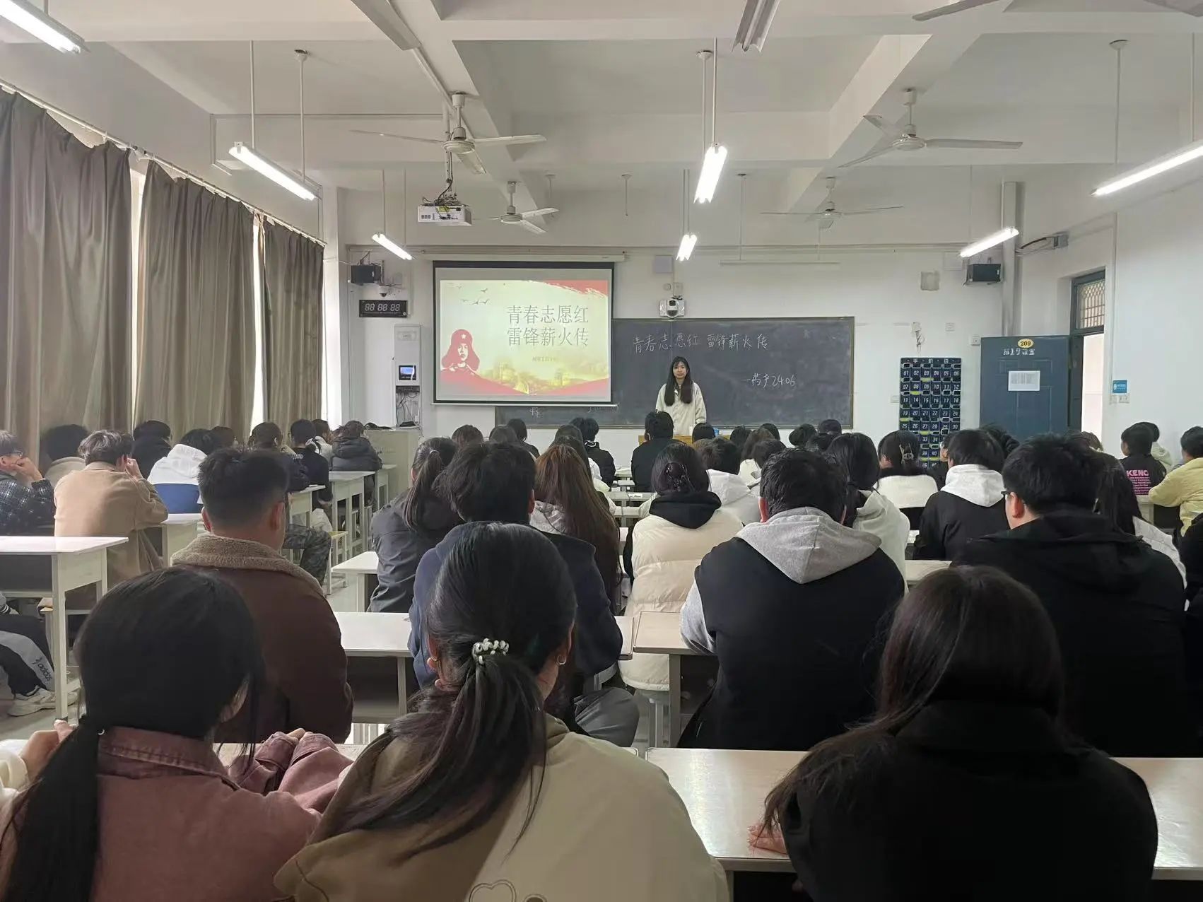 为深入学习和弘扬雷锋精神,推动新时代学雷锋活动在内容拓展和形式创新焕发活力,促进其薪火相传、永葆生机,团结带领广大团员青年在实践教育中得到认知升华。在第62个“学雷锋纪念日”、第26个“中国青年志愿者服务日”到来之际,制药工程学院于2025年3月11日组织开展以“青春志愿红,雷锋薪火传”为主题的团课活动,学院共43团支部班级参与学习,共同感受雷锋精神的时代魅力。