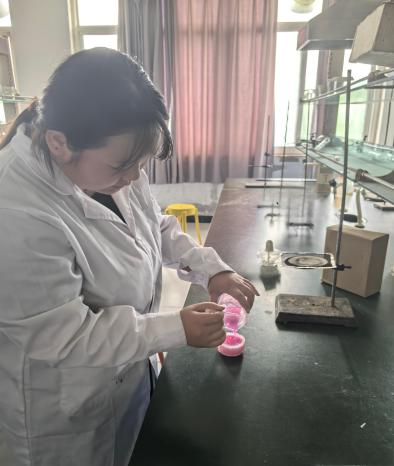 活动现场,化学与检测教研室的老师们化身“科普导师”,结合专业知识,向同学们详细讲解水晶皂的制作原理,从原料特性、化学反应到工艺步骤,深入浅出的讲解让晦涩的化学知识变得生动有趣。在实践操作环节,同学们充分发挥动手能力,严格按照步骤称量原料、加热搅拌、添加色素与香精、倒入模具,每一个环节都认真细致,力求制作出完美的水晶皂。过程中,老师全程指导,及时纠正操作问题,确保活动安全有序进行。
