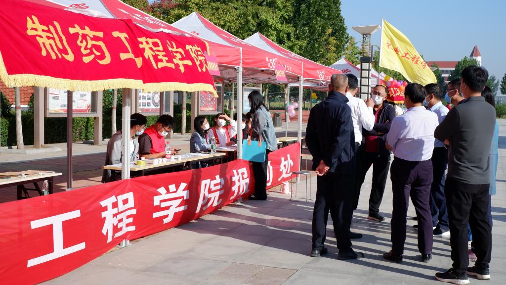 在开封校区南院迎新场地,魏新华一行先后查看了新生报到通道、报到流程设置、新生辅导员和班主任配备情况及疫情防控工作安排等情况,由制药工程学院院长吕玮介绍了了学院的专业情况、设置情况、专业发展、学生管理情况。
