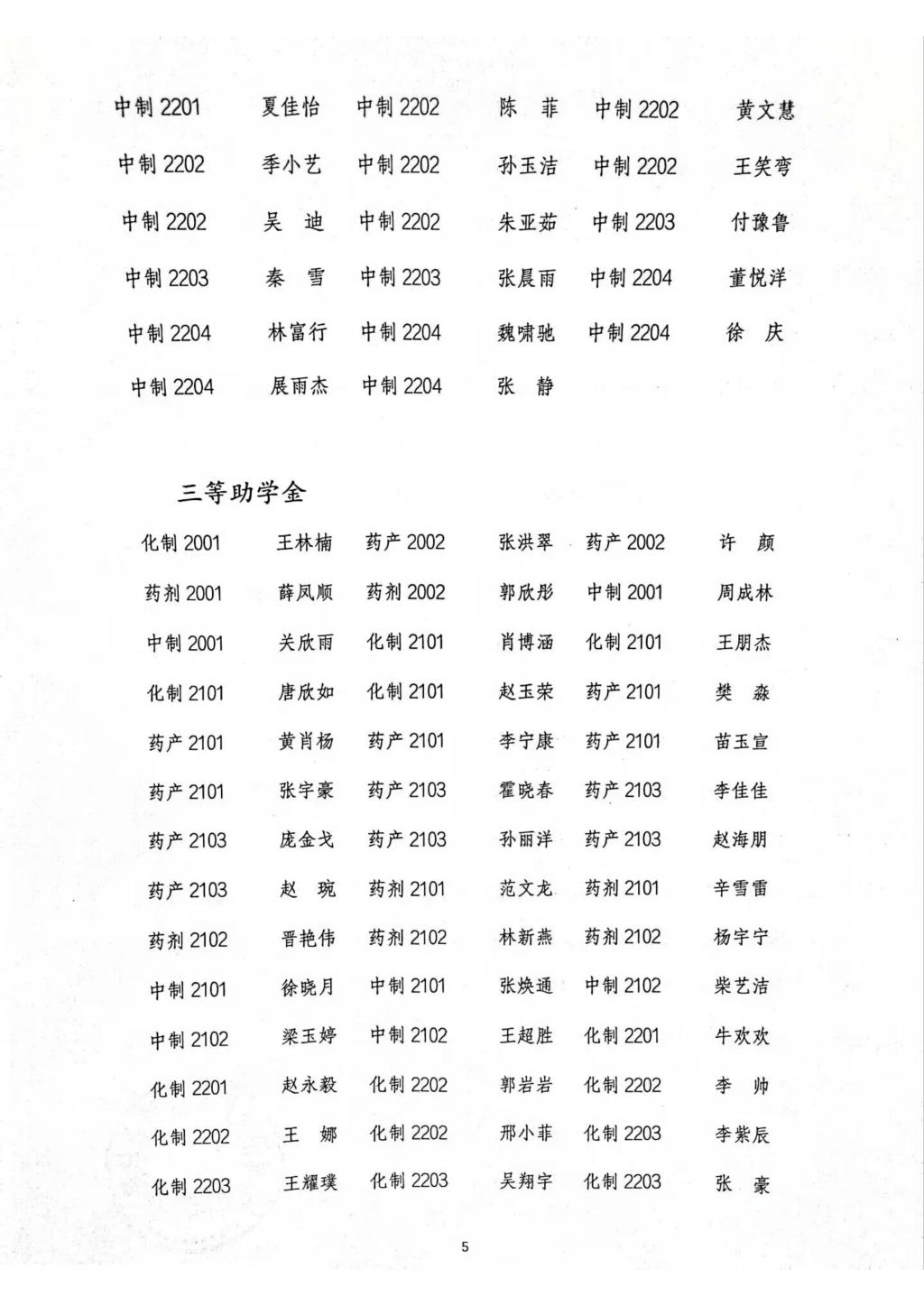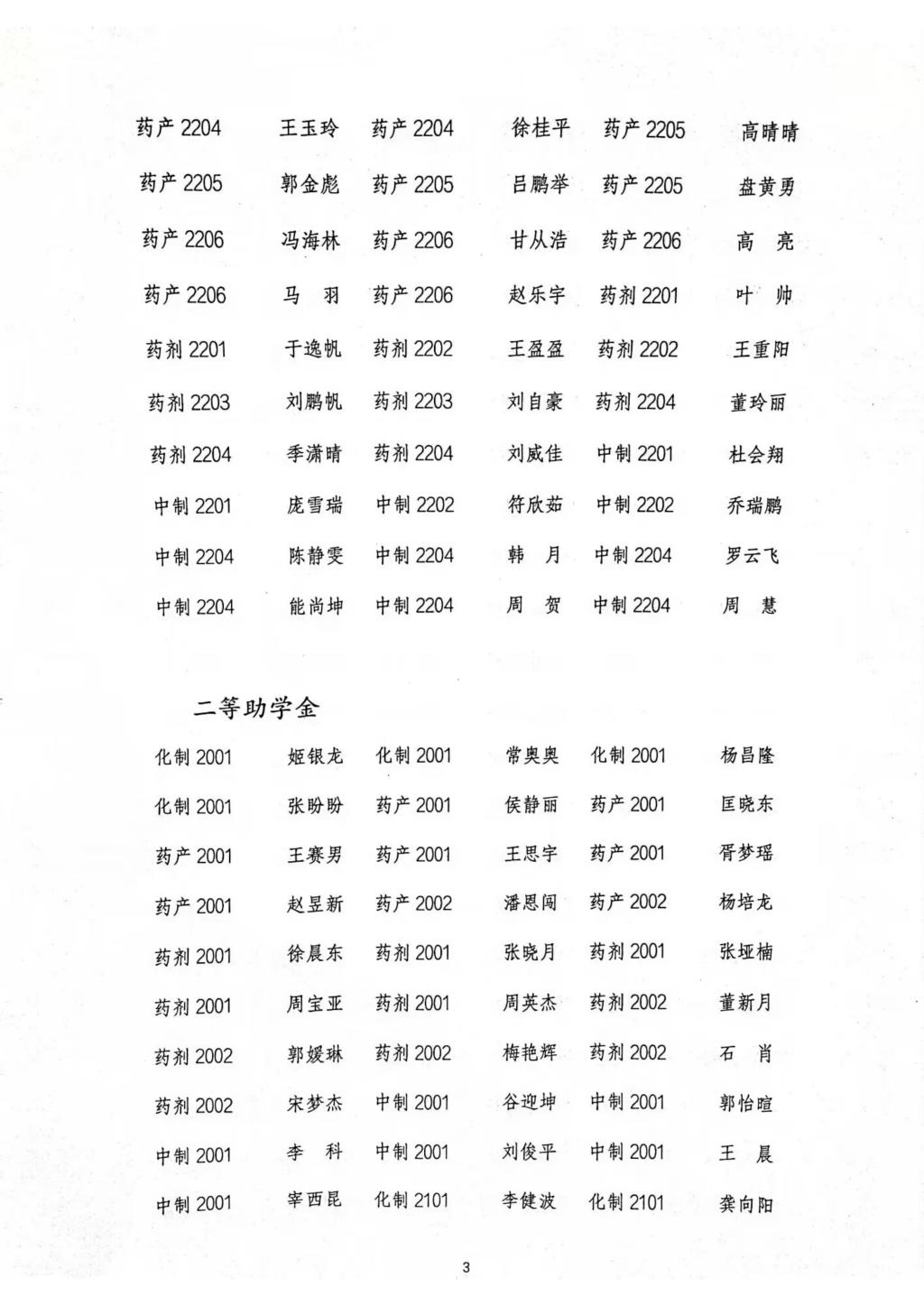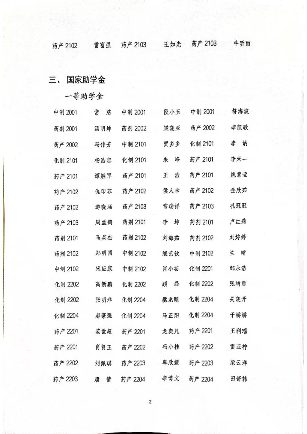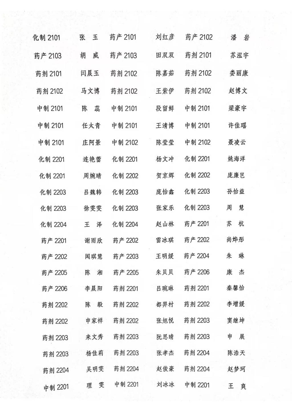 制药工程学院2022年国家奖学金、国家励志奖学金、国家助学金拟推荐名单公示