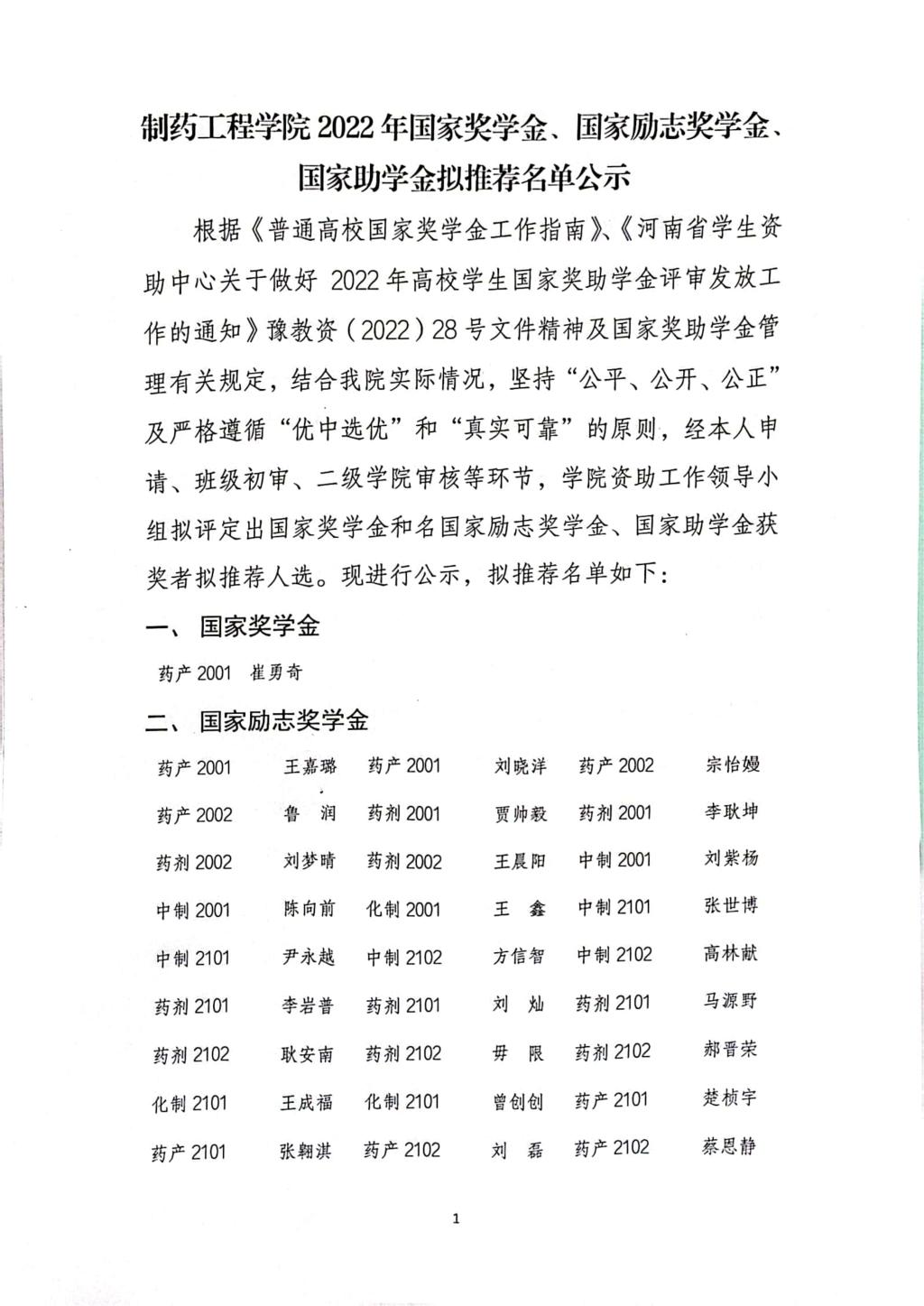 制药工程学院2022年国家奖学金、国家励志奖学金、国家助学金拟推荐名单公示.pdf