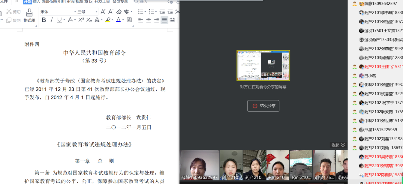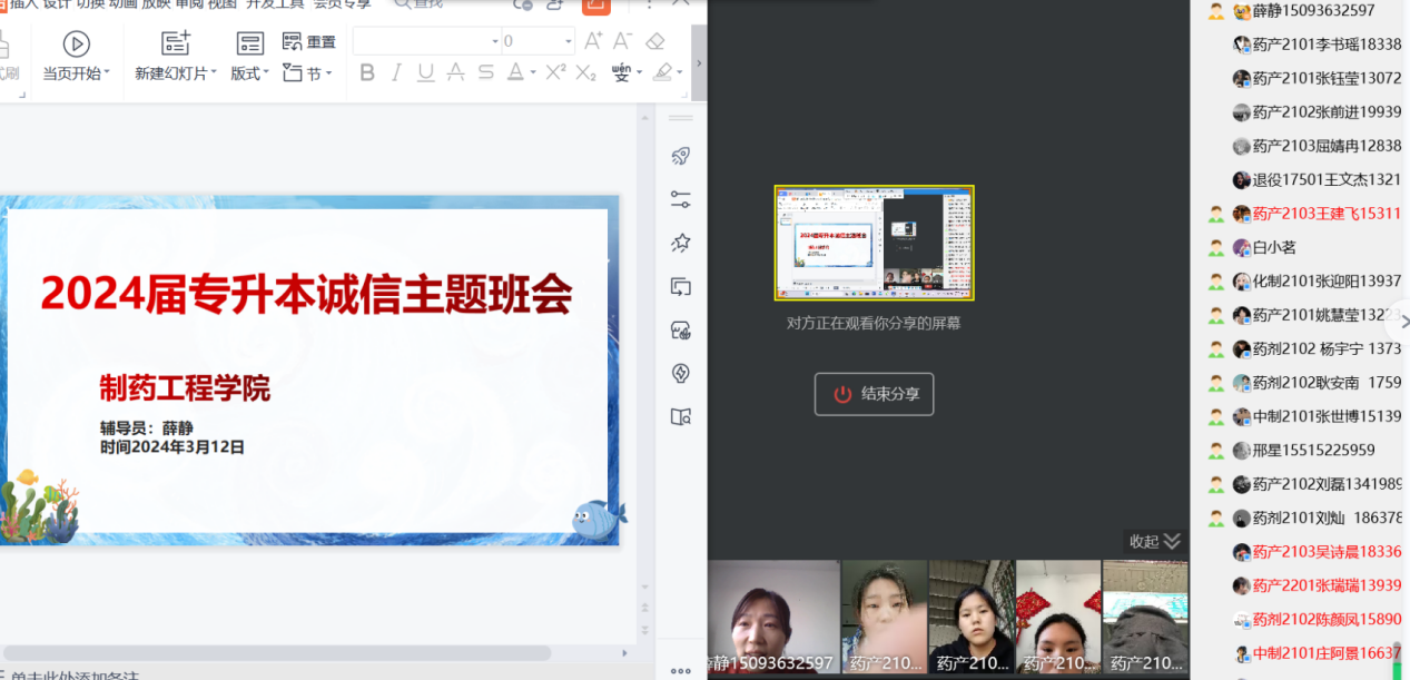 2024年专升本考试临近,为做好专升本考生考前相关工作,进一步端正考风、严肃考纪,引导考生树立诚信考试的正确价值观,制药工程学院于2024年3月12-3月16日之间召开线上专升本考试诚信教育主题班会,会议由制药工程学院专升本负责人薛静主持,各班专升本考生积极参会。