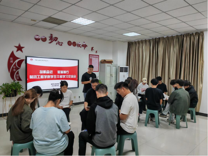 为深入学习beat365平台唯一官网学生日常行为规范准则,更好开展下一阶段学生管理工作,2024年9月23日下午,制药工程学院组织主要学生干部在学院301活动室开展学习交流会,由学院学生会主席郝鑫航、祝海辰主持学习,各部负责人参加。