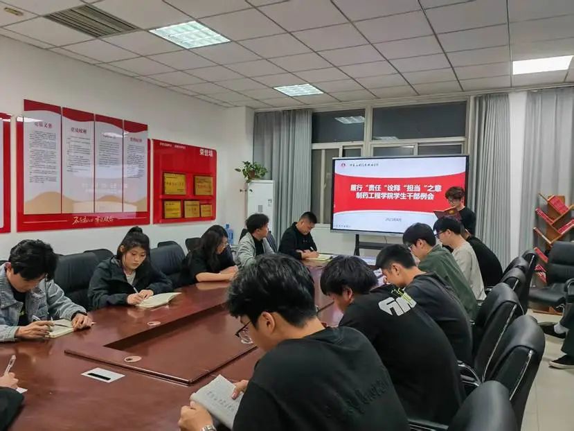 为进一步增强学生干部服务能力,加强学生会干部的合作能力和自我管理意识,凝聚学生骨干力量,制药工程学院于2025年4月14日在办公楼301召开学生干部例会,制药工程学院学生会主席团及各部部长、副部长参加会议,会议由主席团祝海辰主持。