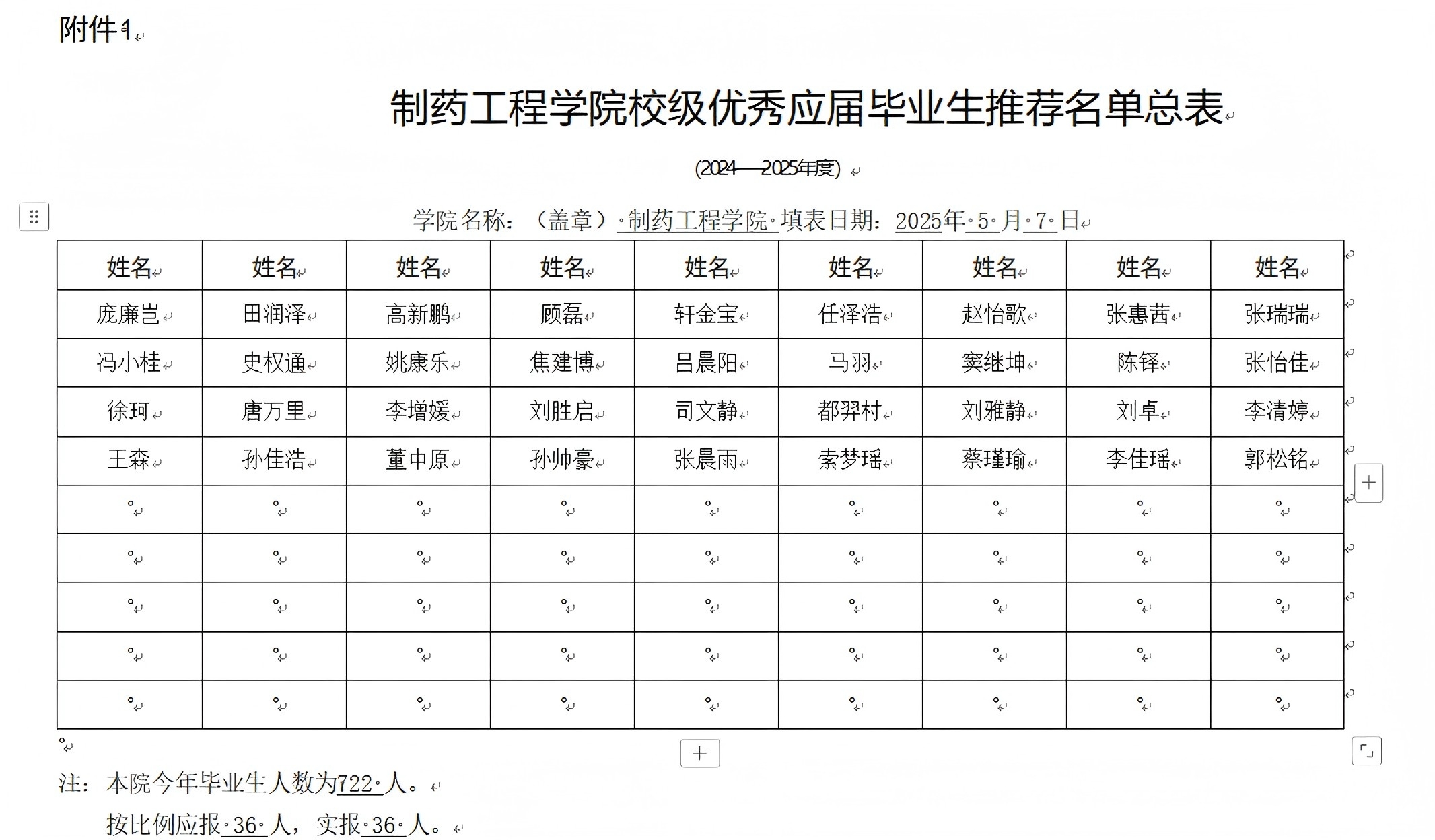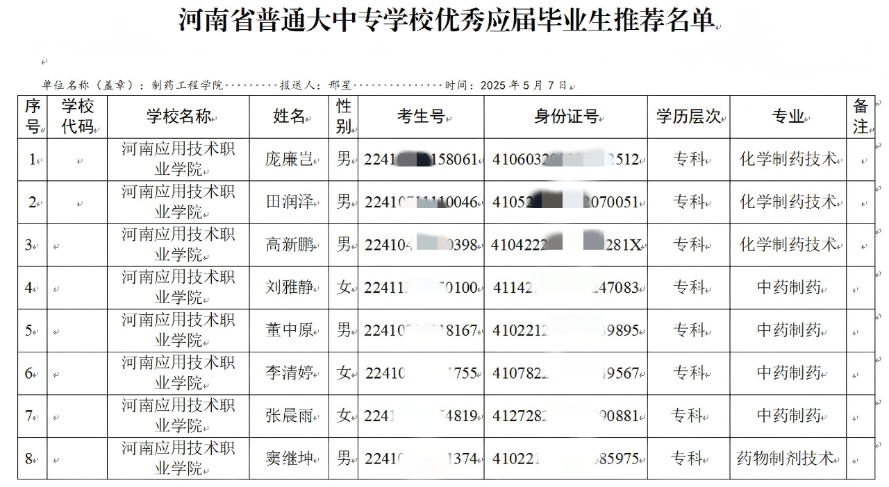 1、《制药工程学院校级优秀应届毕业生推荐名单总表》