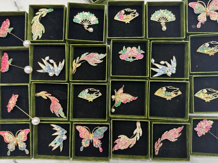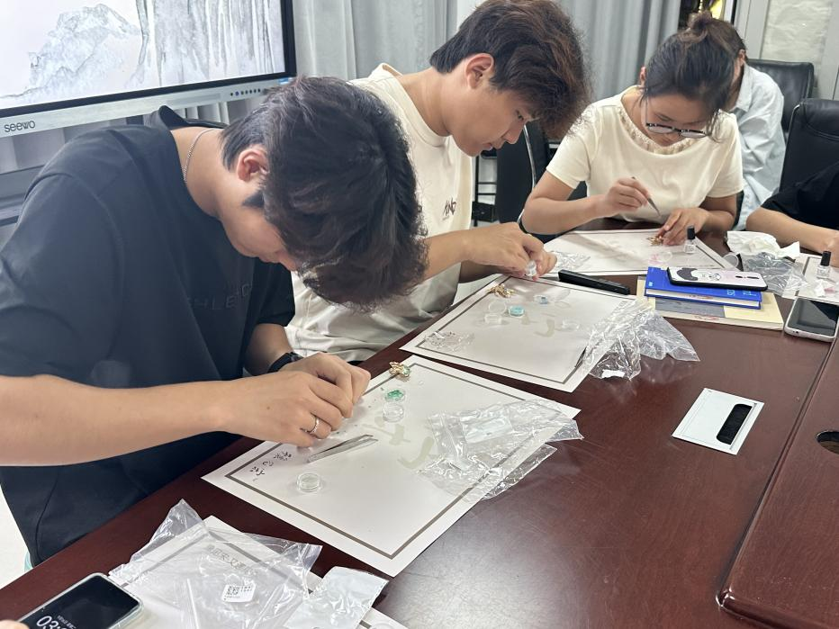 活动现场,学生们先认真了解螺钿工艺的历史渊源与文化内涵,随后在指导下投入胸针制作:从挑选贝壳颜色、规划镶嵌布局,到精准粘贴,每一个步骤都凝聚着专注与巧思。原本零散的贝壳碎片,在指尖的打磨与组合中逐渐焕发生机,成为兼具美感与心意的独特饰品。