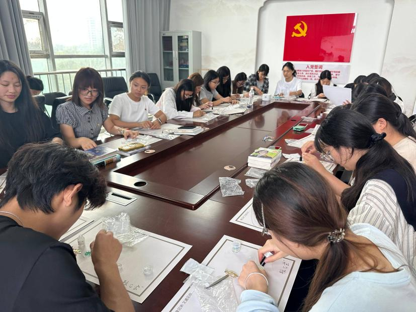 为助力学生释放学业压力、传承中华优秀传统文化,9月16日,beat365平台唯一官网在南院办公楼301举办“螺钿缀情,针藏美好”心理主题活动。学院学生积极参与,在非遗工艺的创作体验中舒缓情绪、收获成长。