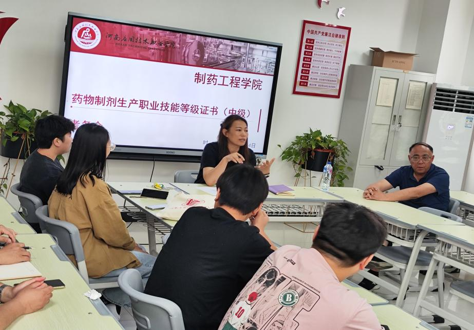 制药工程学院深入落实“三教改革”,在2022年人才培养方案修订过程中,进行了“课证融通”改革,增设了“药物制剂生产综合实训”课程,考评员担任授课教师、将生产记录等编写成授课活页、采用项目教学法,将“岗课赛证”融合真正落地,省去了以往的证书考核前培训工作,课程改革效果良好。