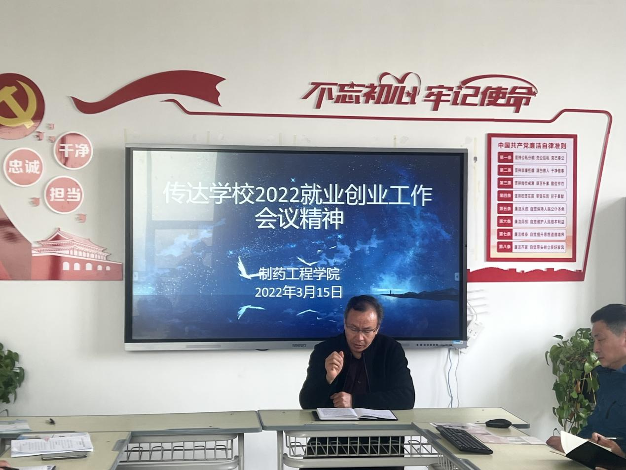 为推动毕业生就业创业工作进一步落实落细,积极促进学生就业、稳妥推进重点群体就业、突出抓好困难群体就业、营造和谐就业环境,2022年3月15日下午,制药工程学院在501会议室召开2022年就业创业工作会议,制药工程学院院长韩恩远主持,全体教职工参会。