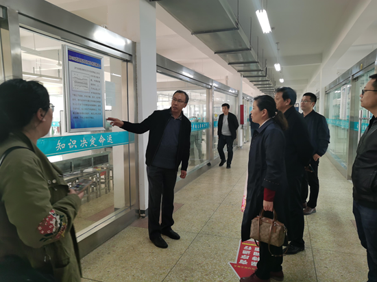 韩院长对濮阳医专药学系的领导与老师前来参观交流表示热烈欢迎。在陪同参观固体制剂实训基地、液体实训基地的过程中,结合实际介绍了我院在实训基地与实训室建设、仿真室建设与管理、制药专业建设及招生就业等方面的情况。何主任对我院实训基地建设取得的成绩表示赞许,认为有借鉴作用。