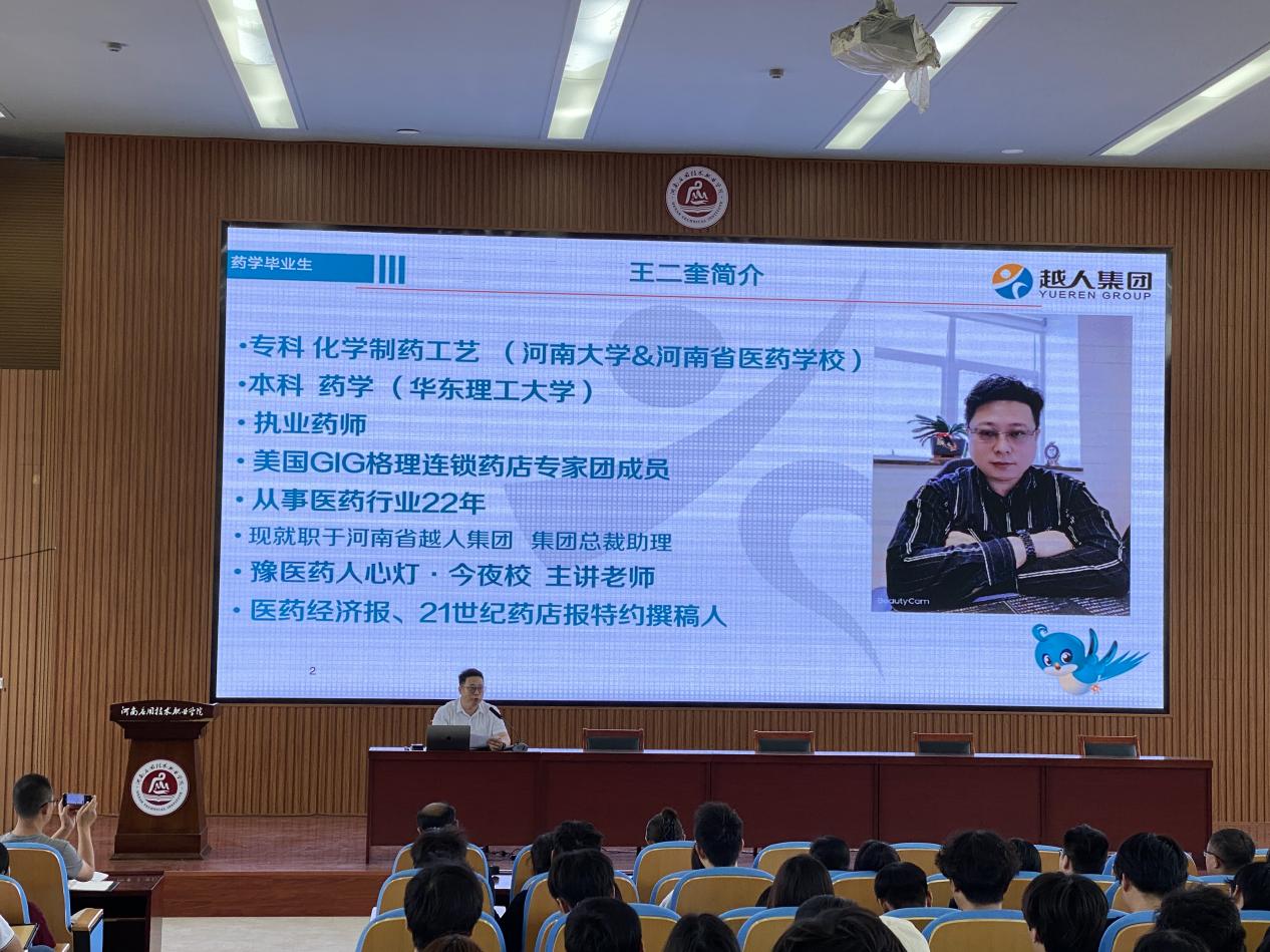 2024年5月16日,制药工程学院在开封校区南院学生活动中心召开2024年职教活动周系列活动之“药”你同行促成长校友分享会。副校长常新中、校企合作与就业处处长马春燕、优秀校友河南省越人集团总裁助理王二奎、学院全体教职工、学院200余名学生参加会议,会议由制药工程学院院长吕玮主持。