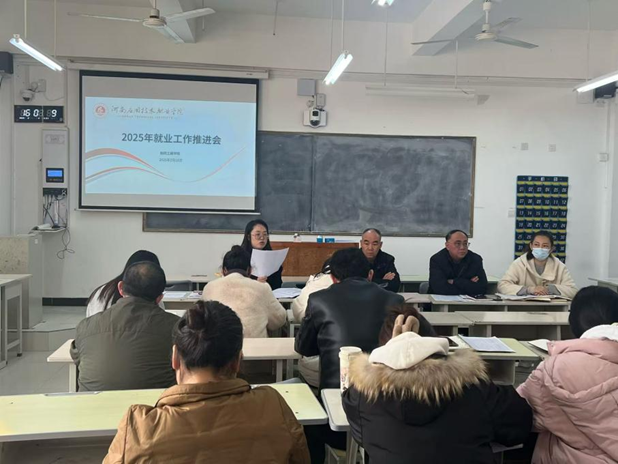 书记窦传斌分析就业形势,指出2025年高校毕业生人数增加,就业竞争激烈,但新兴的人工智能、新能源产业以及传统行业的转型带来诸多机遇。他强调,辅导员和实习指导老师要组织一些线上的专业技能培训和就业形势分析讲座,引导学生把握机遇,提升竞争力,适应就业市场变化。
