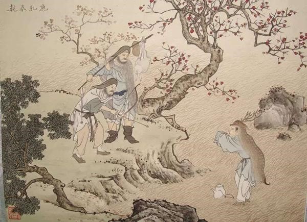 郯子,己姓,是少昊的后裔。郯子治国讲道德、施仁义,从而使郯地文化发达,民风淳厚,一些典章制度都很好地继承保存下来。 郯子的仁孝历来为后人称道,在传颂不衰的“二十四孝”中,郯子“鹿乳奉亲”的美德一直被视为仁孝的楷模。《增订绘图孝经白话句解》卷首《二十四孝图》就记载了郯子为治好父母的眼疾,隐藏在鹿群中取鹿的乳汁帮父母治病的故事:“周郯子,性至孝。父母年老,俱患双眼,思食鹿乳。郯子顺承亲意,乃衣鹿皮,去深山,入鹿群之中,取鹿乳以供亲。猎者见欲射之,郯子具以情告,乃免。”